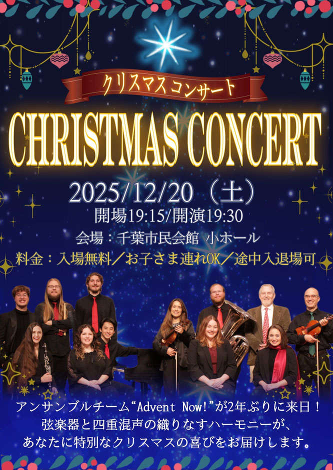 2年ぶりに米テネシーより、アンサンブルチーム"Advent Now"を迎え、コンサートを開催します!